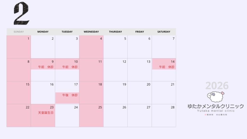 ゆたかメンタルクリニックの2月の診療予定をお知らせします。
